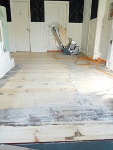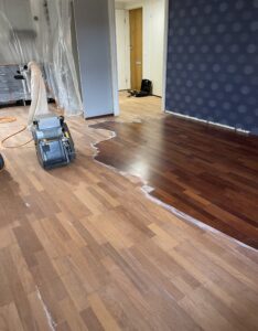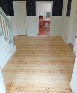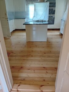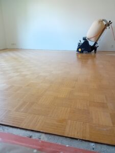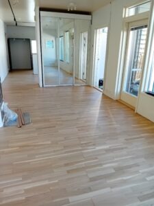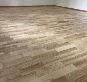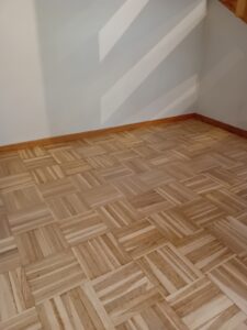 Saarni-ohutsauvaparketti. Korjaus valmis, 2-komponenttilakka pinnassa