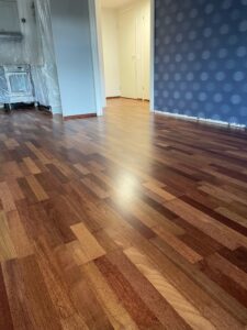 Merbau-lautaparketti, jälkeen, 1-komponenttilakka pinnassa