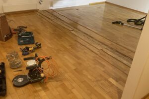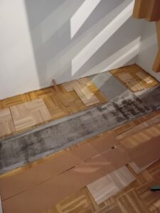 Saarni-ohutsauvaparketti. Lattialevyjen sauman korjaus