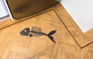 Kalanruoto kalanruotolattiassa. Tammimosaiikki, pinnassa Pallman Magic Oil, valkoinen sekoitus